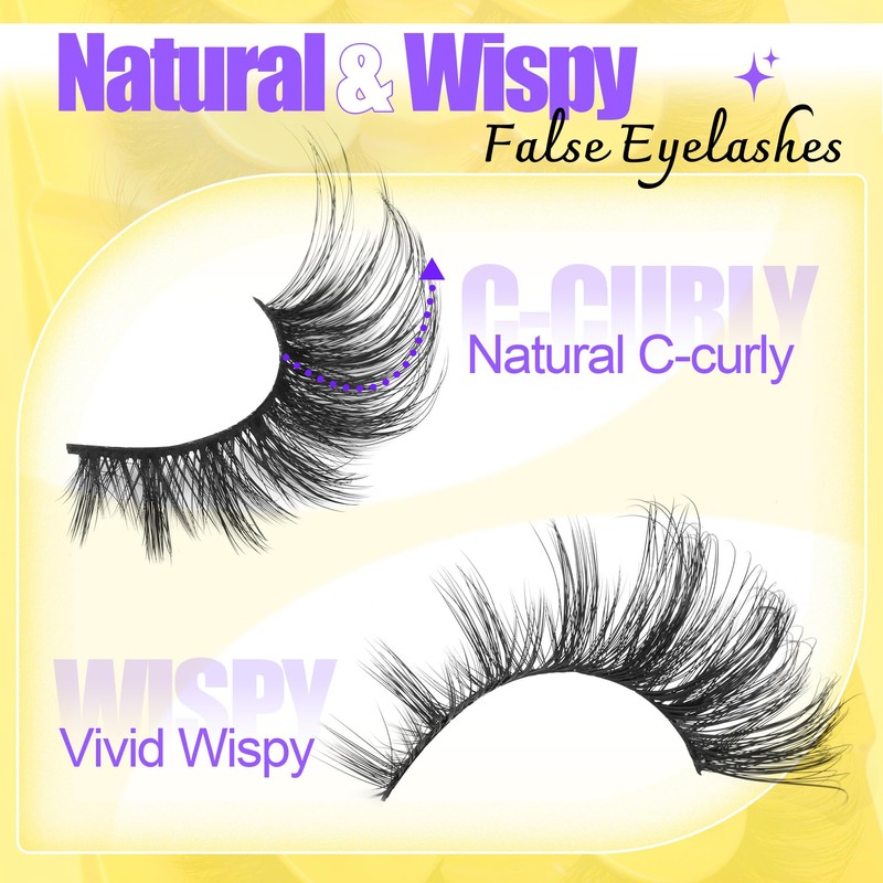 - 10-20MM Wispy Long False Eyelashes: This 7-pack of wispy false lashes will give you the everyday look that natural lashes achieve, but will also give you the striking effect of longer lashes thanks to her long tail.