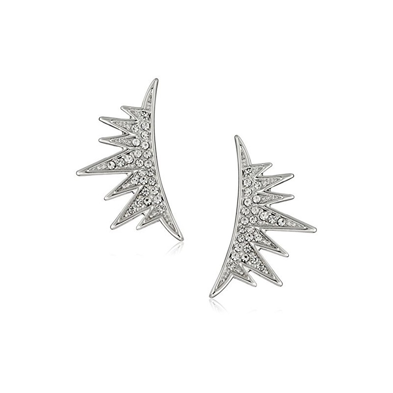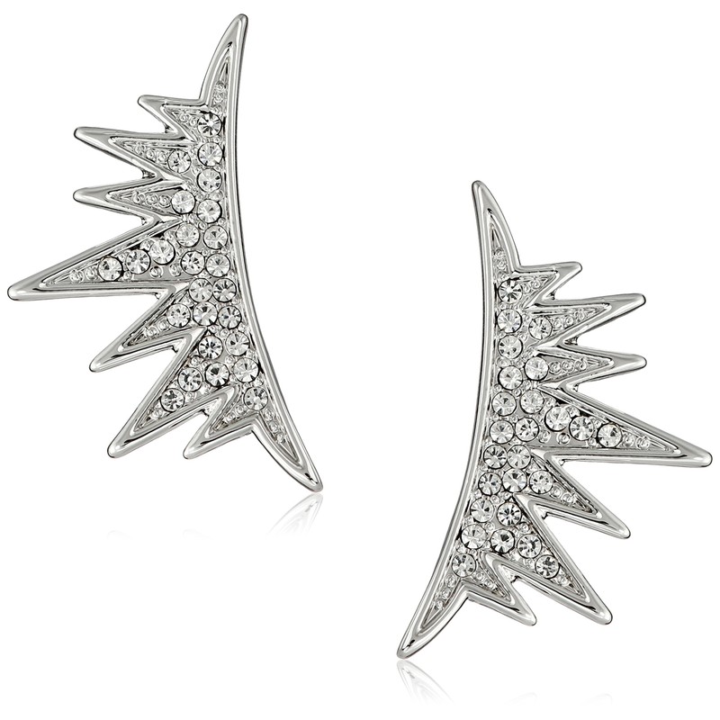 - Metallic-tone ear crawlers in abstract shape lined with pave crystals