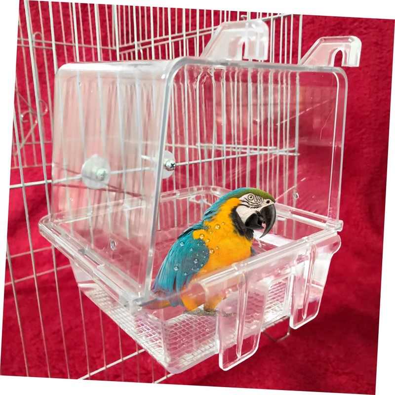 CIYODO Parrot Bird Bath with Hanging Hooks Durable Transparent Bird Bath for Cage Shower for Parrots and Pets