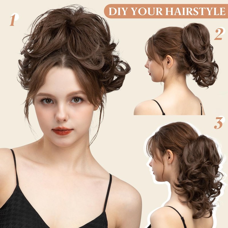 CJL HAIR Claw Clip Short Ponytail Hair Extensions DIY Bendable Metals Messy Bun Hair Piece for Wonen Wavy Curly Synthetic Fake Hairpieces Brown to Ash Blonde