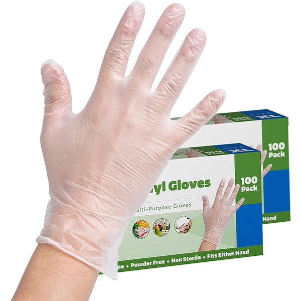 Clear Powder Free Vinyl Disposable Plastic Gloves [200 Pack]