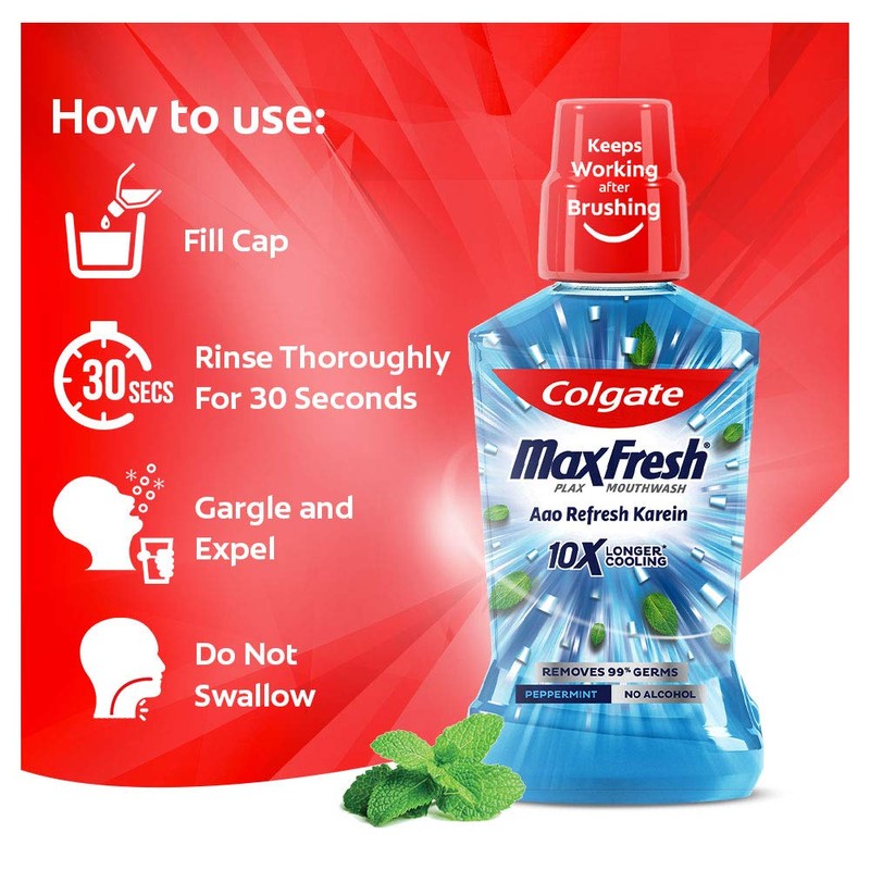 - Colgate Plax Peppermint Mouthwash is one of the best oral care product of Colgate Brand