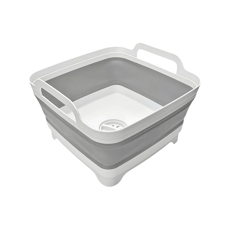 Collapsible Wash Basin 9L, Foldable Dish Tub with Drain Plug, Portable Collapsible Dish Basin, Camping Sink for Washing Dishes, Laundry & Kitchen Use,Gray