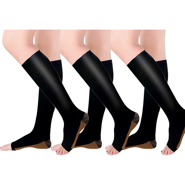 Copper Compression Socks 3 Pairs - Open-Toe Toeless Compression Socks for Women and Men(Black - 3 Pairs, S/M)