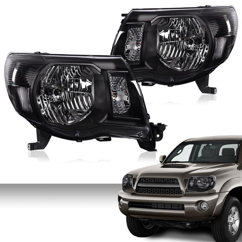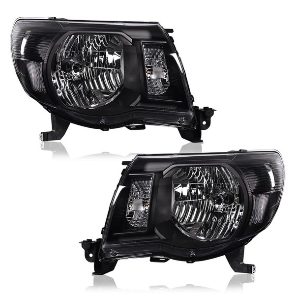 CROSSDESIGN Headlights Assembly Compatible with Toyota Tacoma 2005 2006 2007 2008 2009 2010 2011 bumper Headlamp Clear lens Black Housing Clear Reflector