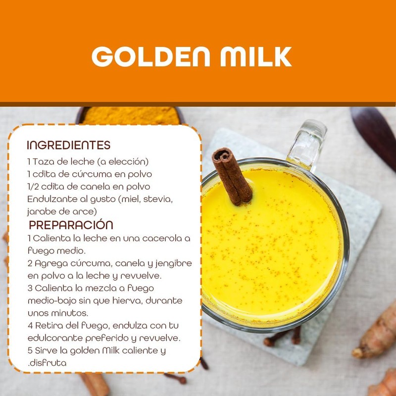 - VERSATIL | Por su distintivo sabor y color, la cúrcuma resulta ser uno de los condimentos más apreciados en la cocina y en las dietas. Este producto, es muy utilizado en recetas de muchos hogares como condimento culinario para aromatizar platos, guisos y también en deliciosas bebidas como la “golden milk” o leche dorada con cúrcuma y especias, una infusión a base de leche muy aromática y deliciosa. ¡Miles de opciones con un solo producto!