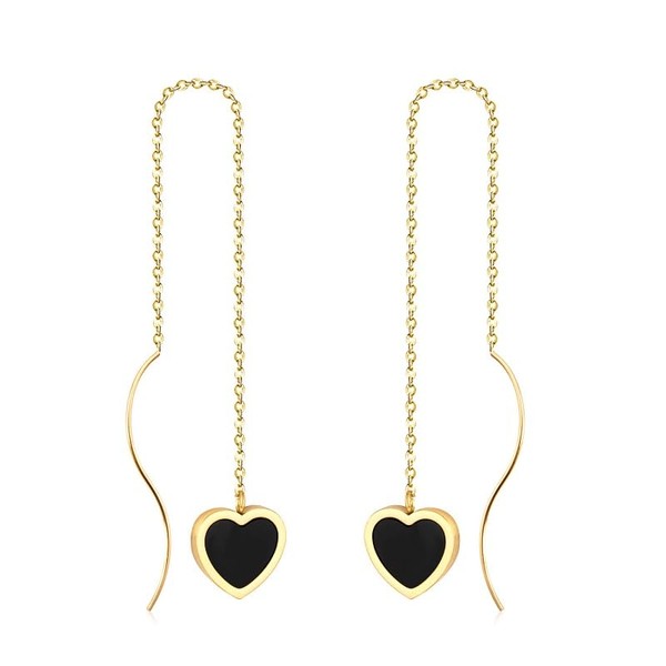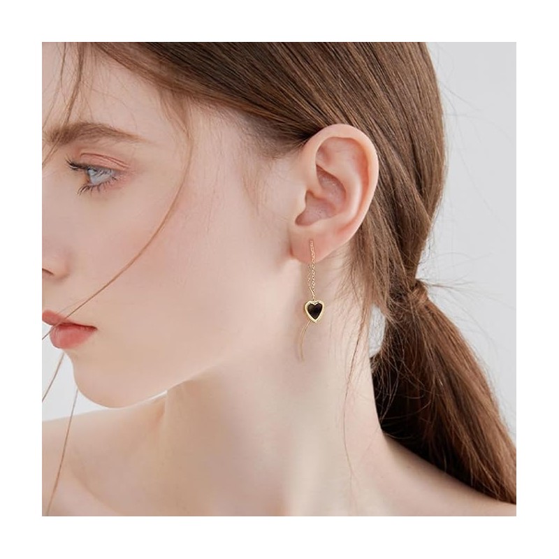 - 🏄【Elegant Design】: The cute black heart at the end of each earring adds a touch of charm, while the delicate tassel threader dangles beautifully for a chic and playful look.