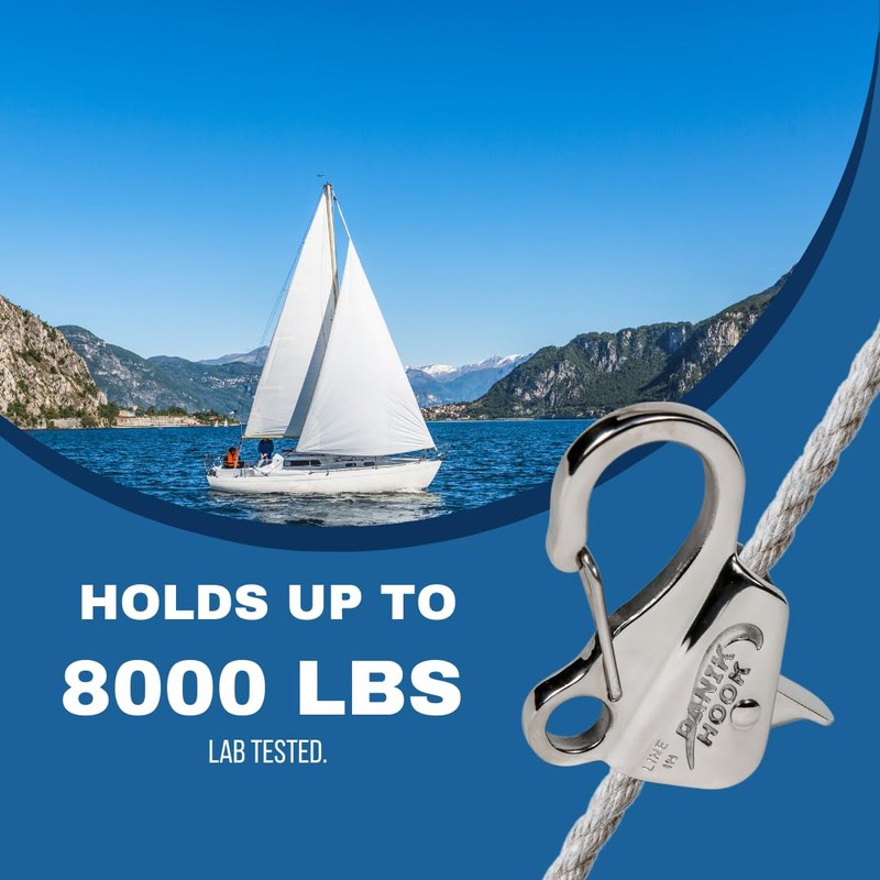 - Product with value: Holds up to 8,000 lbs. Tested under laboratory conditions. Made from scratch resistant Stainless Steel. Adapts from 3/8" – 5/8" rope with integrated ring for your buoy line and hook opening accommodates up to 3/4″. Best used with multi-braided or three-strand twisted nylon line. Not to be used with poly line.
