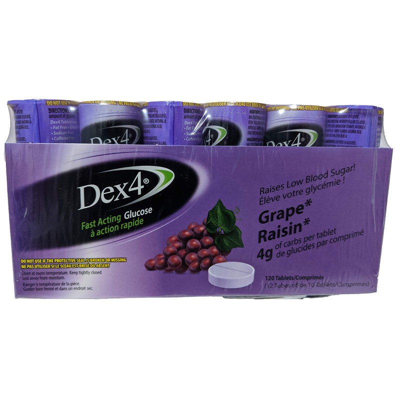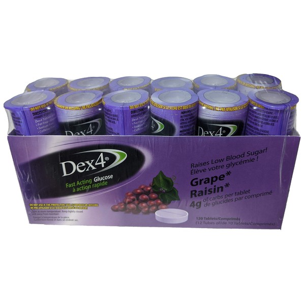 Dex4 Dex4 Glucose Tablets, Fast Acting Sugar Supplement, 12-pack of Dex4 Tubes, 10 Tablets in Each Tube, Each Tablet Contains 4g of Fast-Acting Carbs, Easy to Track Pre-Measured Servings (12 Pack, Grape)