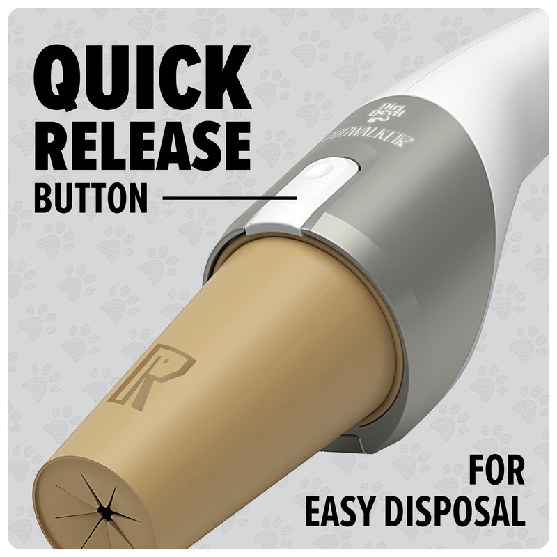 - DISPOSABLE SCENTED WASTE CUP: Once you've picked up the pile, simply drop the disposable waste cup into the trash with the quick-release button – the days of tying knots are over. Includes 16 disposable waste cups.