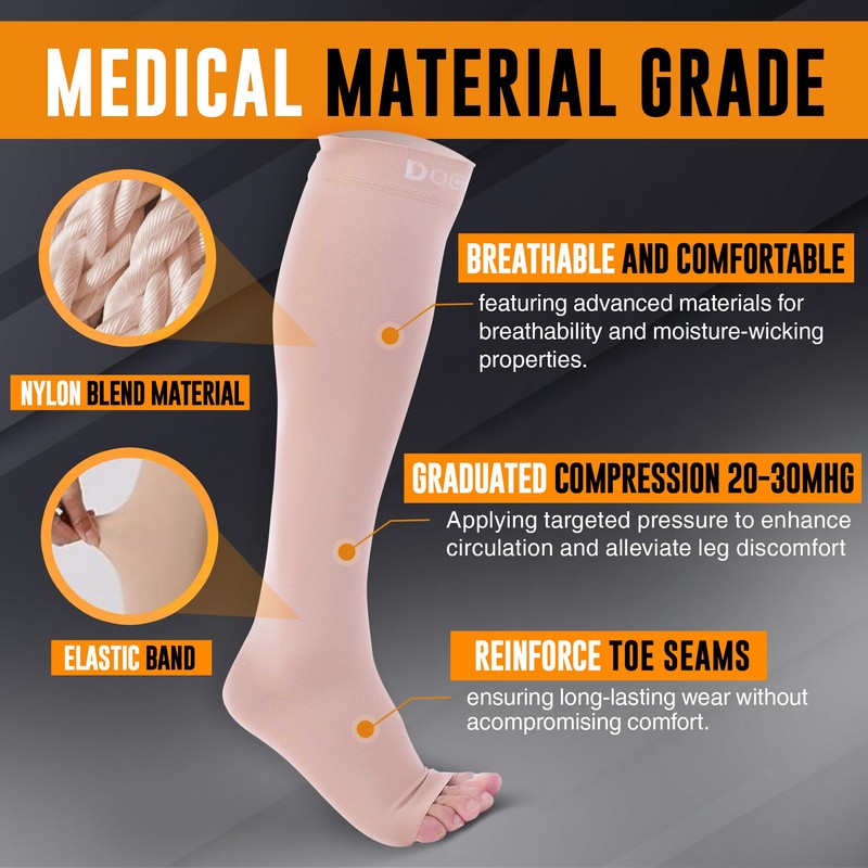 Doc Miller Open Toe Compression Socks, 20-30 mmHg, Toeless Compression Sleeves for Legs, Knee High Stockings for Shin Splints, Varicose Veins, Travel, Calf Support & Muscle Recovery, Men & Women, Pair