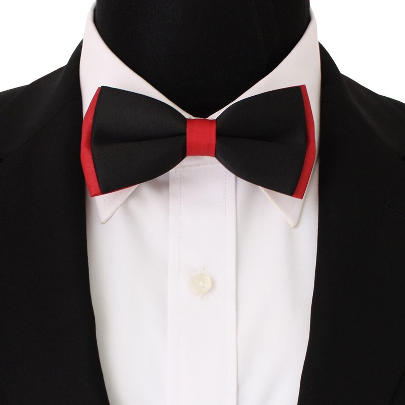 DQT New Plain Black & Red Mens Bow Tie