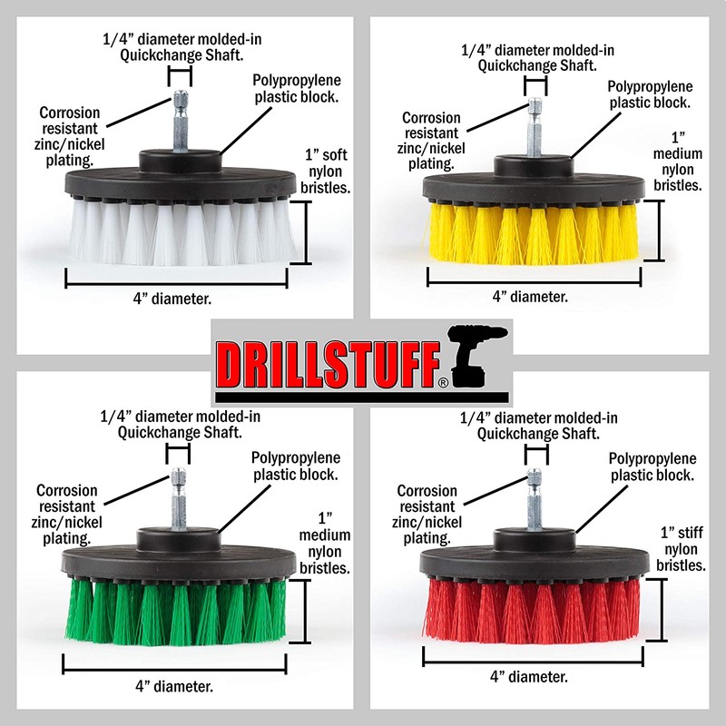 - Our 4 inch diameter drill brush attachment set features a quarter inch quick change shaft
