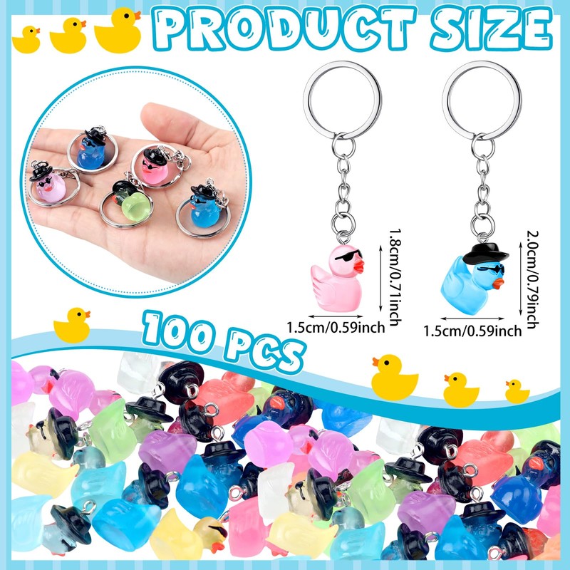 - Enough Quantity to Use and Replace: includes 100 luminous mini duck keychains in 10 colors, providing enough variety for your party decorations and replacement needs; With these delightful luminous duck keychains, one could share in the joy when presenting them to family and friends; They make an ideal gift for a duck themed party or many other gatherings