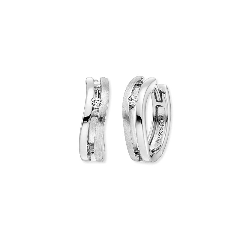 Engelsrufer Filigree Keep It So Simple Xena Women's Creole Earrings Made of Sterling Silver - Set with White Zirconia Stones - Clip Closure - Nickel-Free - Size: 16 mm, Sterling Silver, Cubic Zirconia