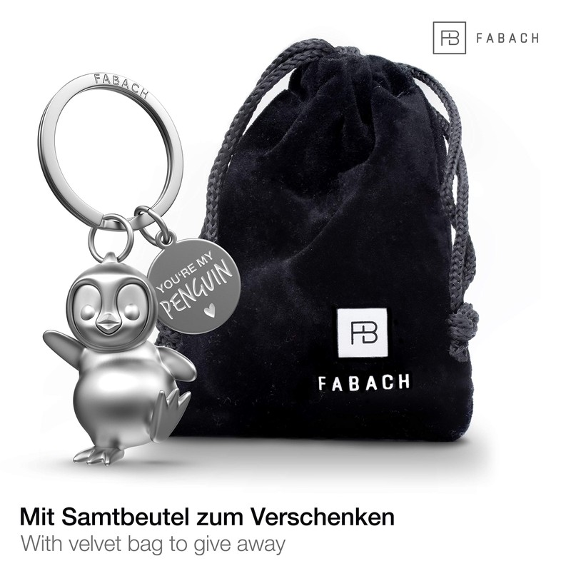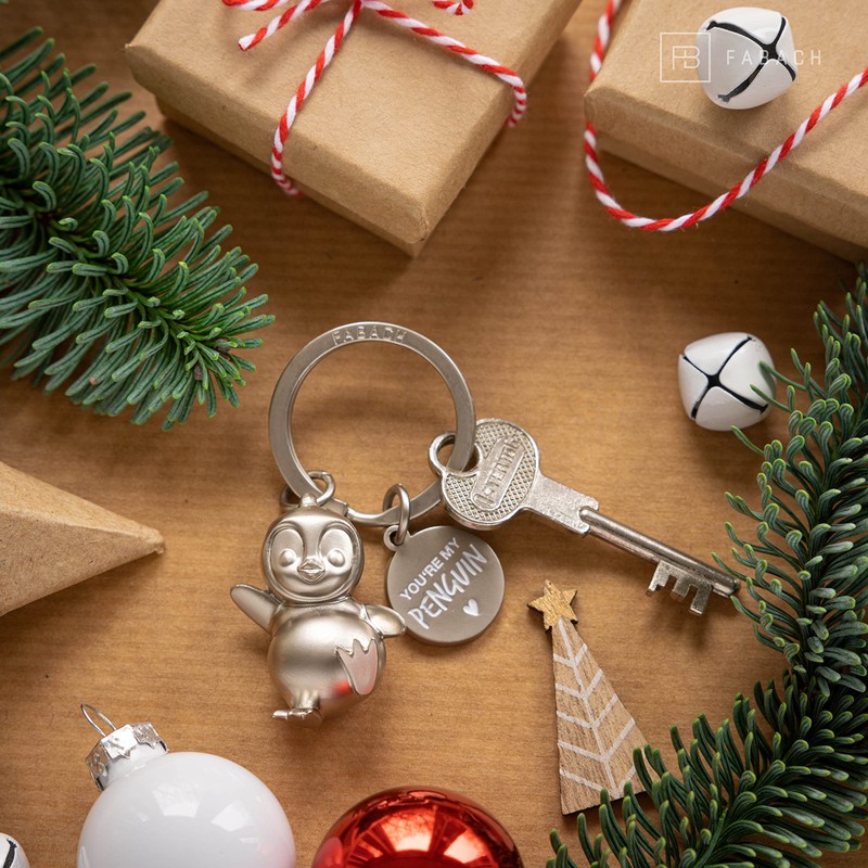 Fabach Breezy the Penguin Keyring Engraved with "You're My Penguin", Lucky Charm Keyring, Gift for a Girlfriend, Boyfriend or Partner, Birthday or Anniversary Gift. Silver