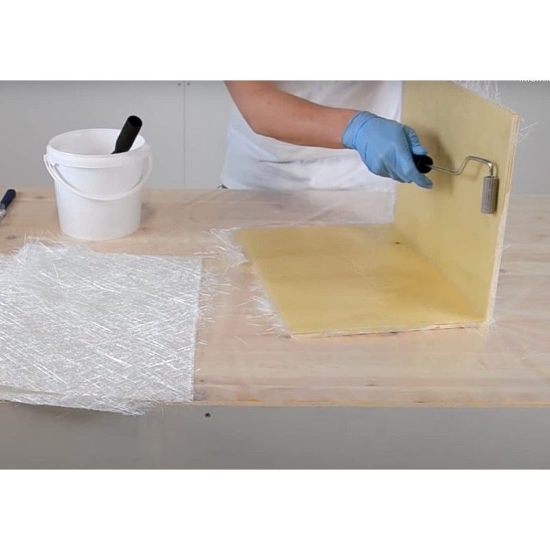 - ✅ You can take advantage of the desired shape. The crosslinked glass fibres are held together by a binder. This binder dissolves in polyester resin and can therefore take on many desired shapes when laminating.
