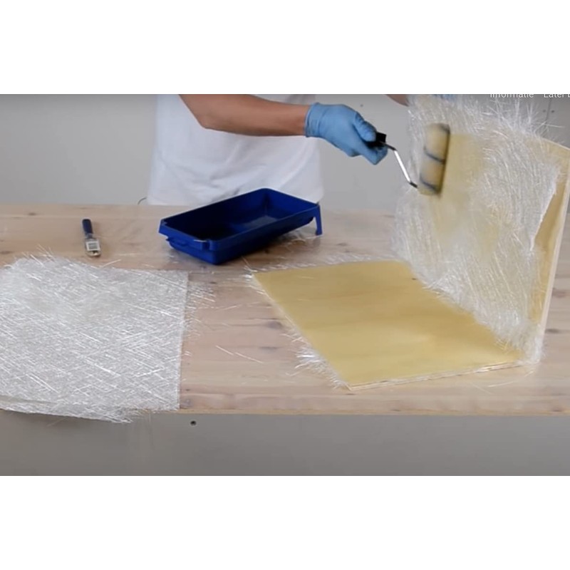 - Size: The 450 g/m² glass mat is 125 cm long and 80 cm wide and has a thickness of 1 mm after lamination.