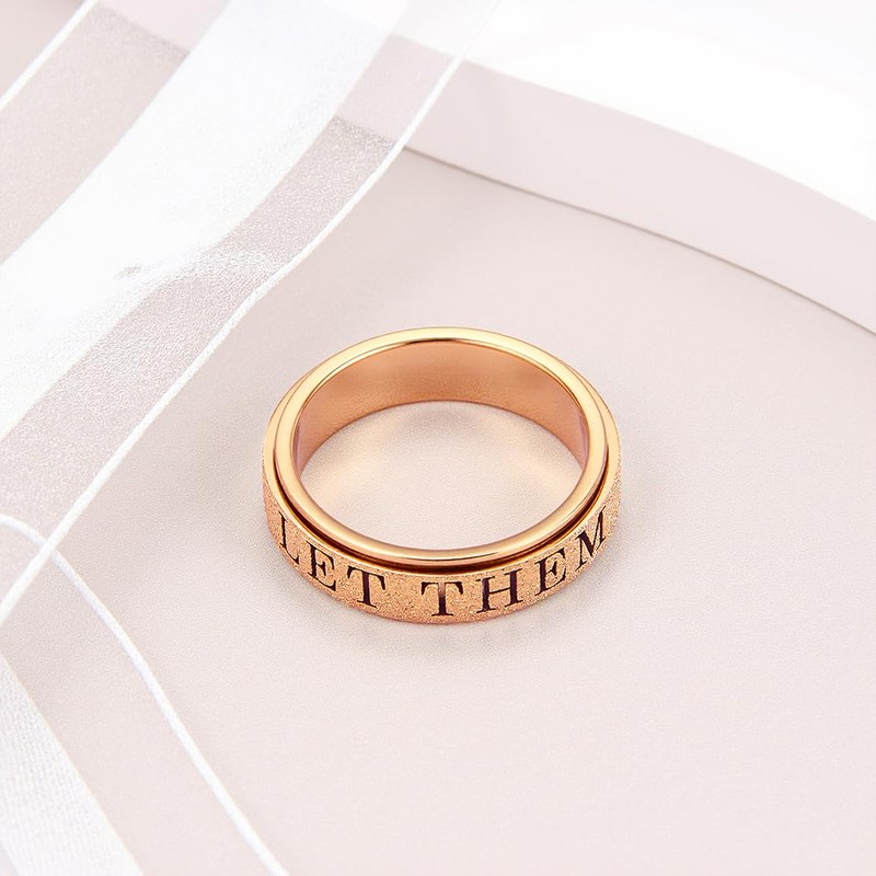 Fidget Toys Adults Anxiety Ring for Women: Fidget Spinner Cute Let Them Symbol Thumb Ring Stainless Steel Gold Silver Black Size 5 6 7 8 9 10 (Rose Gold-LET THEM, 9)