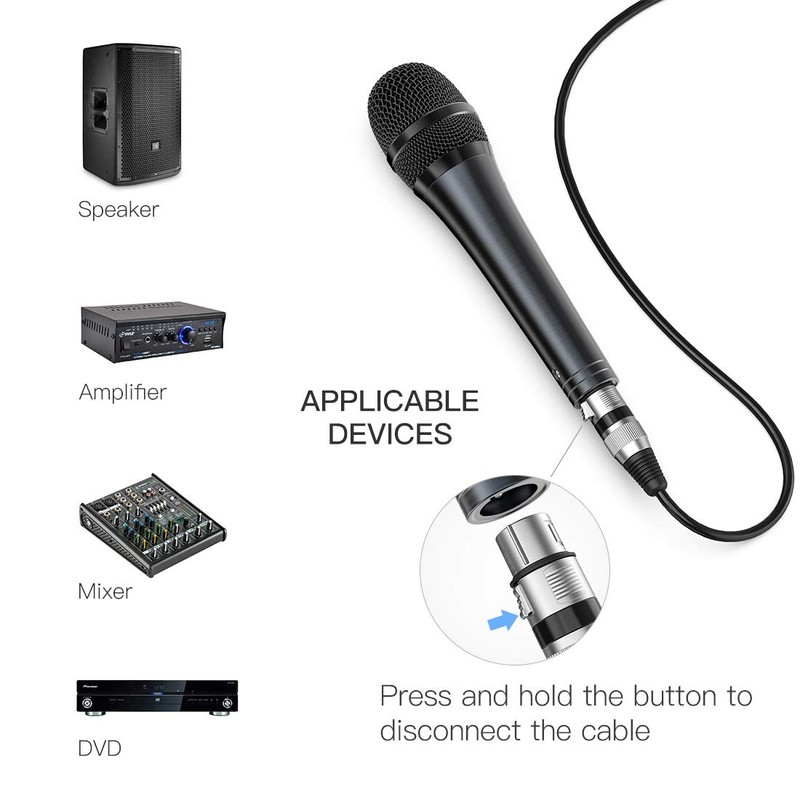 - 🎤A XLR TO 1/4” CABLE INCLUDED-Allowing the wired microphone for karaoke to be directly plug in amplifier speaker or karaoke machine that has 1/4inch (6.35mm) mic in jack. The dynamic vocal microphone protected by two-tire PVC, and it’s thick enough for brilliant, transparent sound transmission with no loss. The corded microphone with 14.8ft-long enough cable can be moved unimpeded so you can concentrate on nothing but the performance.