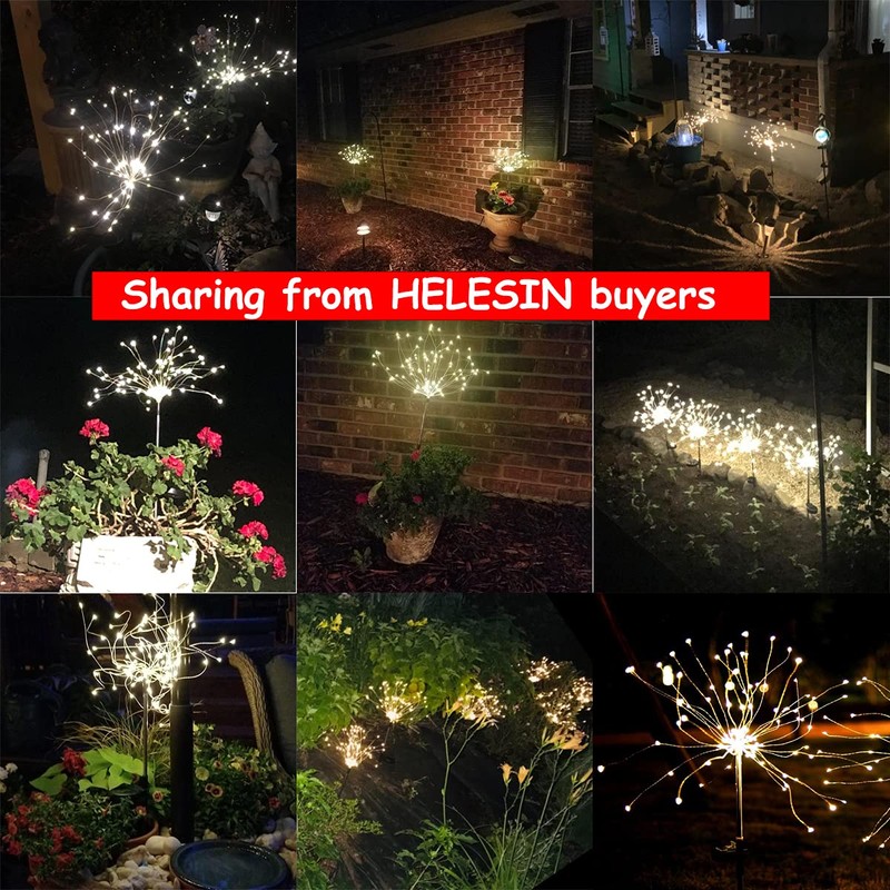 - DIY design and wide application: HELESIN solar fireworks with 105 bright LEDs. The lamp wire is made of soft copper wire, which can be DIY shaped according to your wishes. Suitable for decorating the garden, flower beds, fences, roof, etc. Unique decor for Christmas, Halloween, Thanks Giving Day.