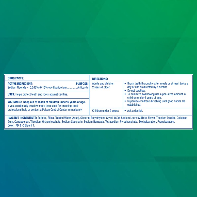 - ACTIVE INGREDIENT - Sodium Fluoride 0.243% fights and protects against cavities for heathier teeth - ANTICAVITY