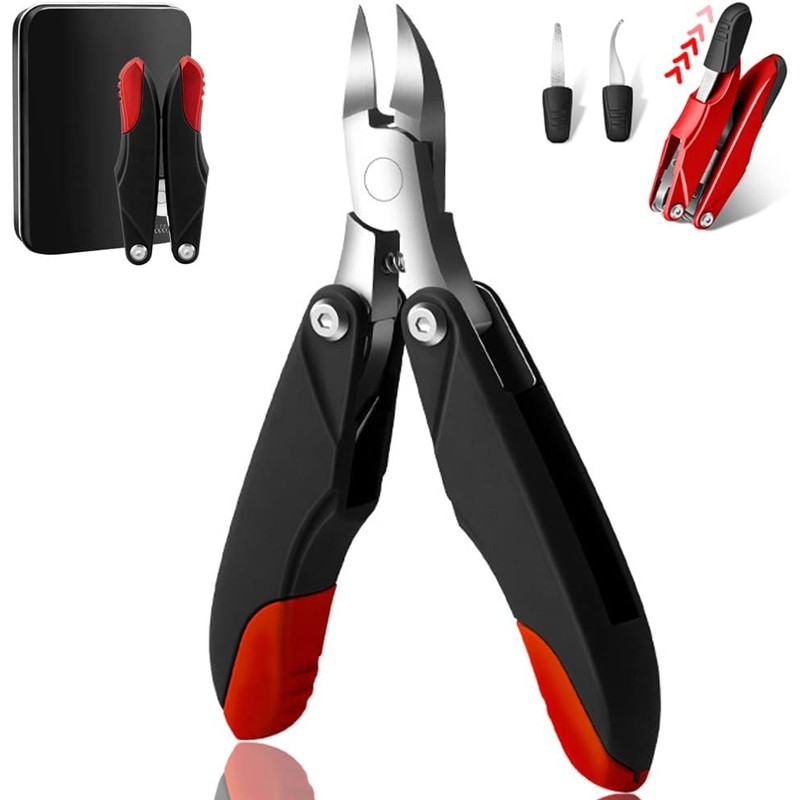 GAROGYI Nail Clippers, Nipper, Foldable, Nail File with Sonde, Set of 3, Convenient, Storage Box, Stainless Steel, Anti-Slip, Ideal for Thick Nails, Deformed Nails, Winding