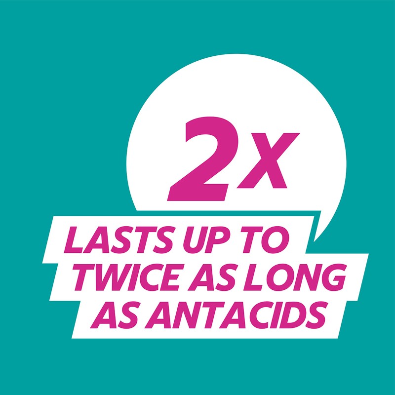 - Lasts up to 2x longer than antacids
