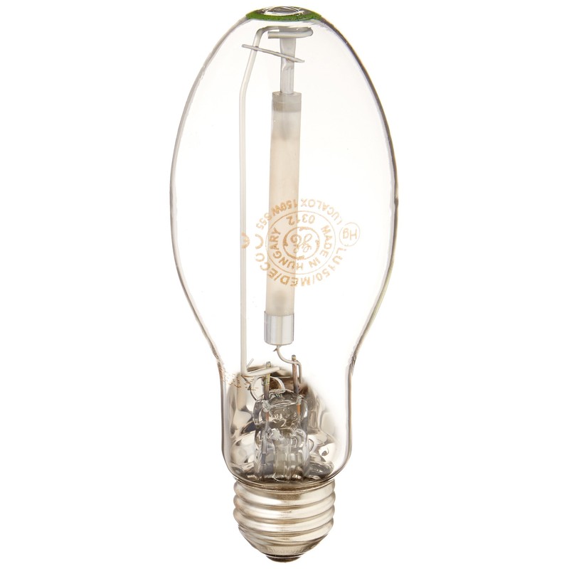 GE 26424 150-Watt LUCALOX HID High Pressure Sodium MED BASE. Bulb Diameter (DIA) [Nom]: 2.125 in, Bulb Finish: Clear, Bulb Material: Hard glass, Burn Position: Universal burning position, Color Rendering Index (CRI): 22, Color Temperature: 2,000 K, Effective Arc Length: 1.570000 in, Hot Restart Time to 90 percent [Max]: 0.670 min, Initial Lumens [Nom]: 16,000.00, Lamp Enclosure Type (LET): Open or enclosed fixtures, Light Center Length (LCL): 3.500 in, Maximum Overall Length (MOL): 5.7500 in, Mean Lumens [Nom]: 14400, Mercury Content: 14.850 mg, Nominal Initial Lumens per Watt: 107, Nominal Length: 5.750 in, Open Circuit Voltage (RMS lag ballast) [Min]: 110 V, Picograms of Mercury: 43.0 pg, Product Technology: High Intensity Discharge, Rated Life [Min]: 24,000 h, Wattage: 150GE HID (High Intensity Discharge) lamps provide high efficacy and low operating cost. The HID is generally the most efficient light source. Better efficiency almost always means lower operating cost. They also have a long life. Most HID lamps have life ratings that are better than incandescent lamps and similar to fluorescent lamps. An HID lamp produces high light output from a relatively compact source. Like incandescent, it is a "point" light source, which allows for good optical control. Light bulb efficiency is measured in lumens per watt (LPW). Rated life for HID lamp life depends on the number of hours per start. The combination of high efficiency and long life makes HID an ideal light source for many commercial and industrial applications. For product questions regarding GE Lighting products, please call GE Hotline 1-800-435-4448, Monday – Friday, 8:00 a.m. - 6:00 p.m. EST Follow the recording prompts or ‘stay on the line’ to speak directly to a customer service rep.