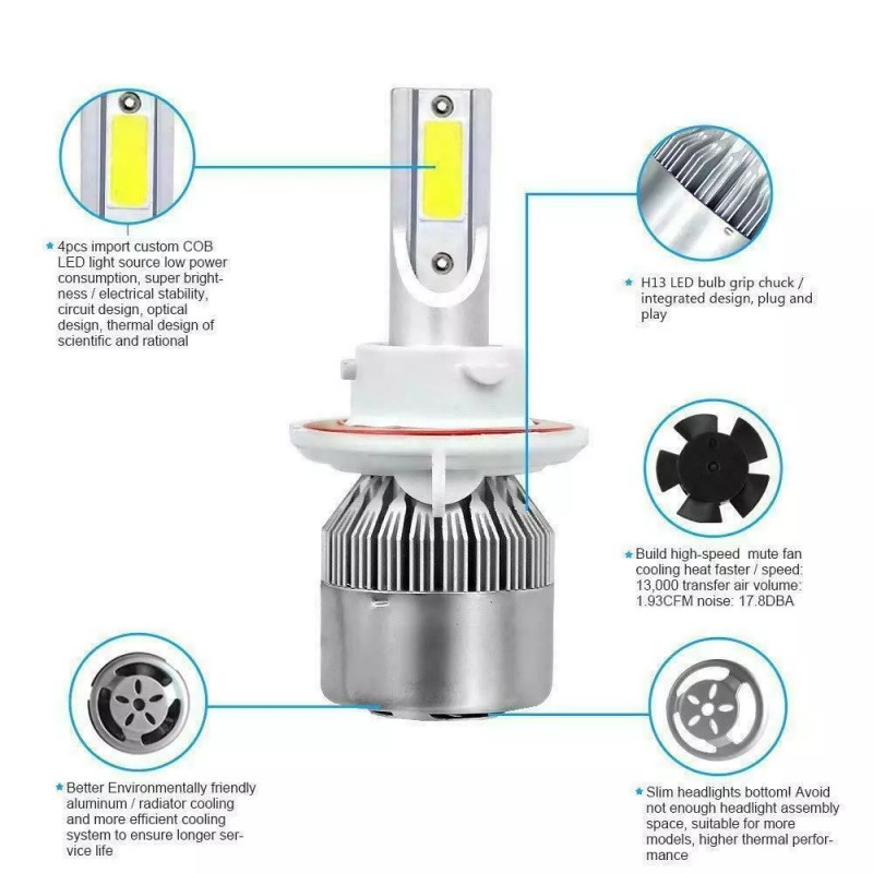 -H13 (High/Low Beam)+ 9145/H10/9140 (fog light) LED replacement bulbs are engineered for superior performance, exceptional looks, and increased safety.