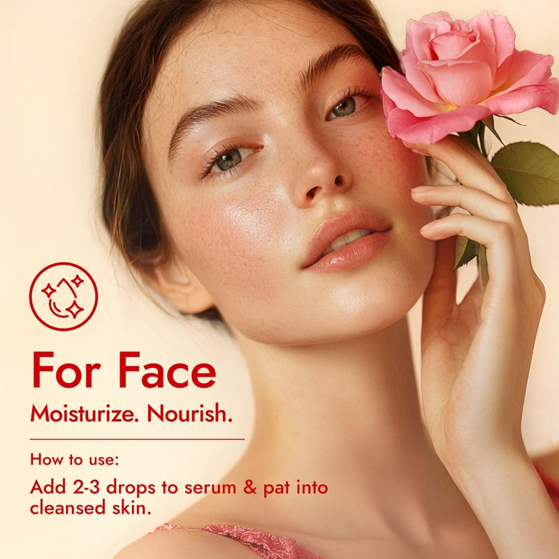 - [SMOOTHS OUT FLAWS] See your skin glow with a few drops of rose oil that retains moisture for youthful complexion.