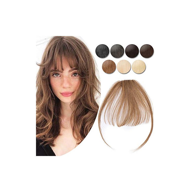 Hairro Clip In Bangs Real Human Hair Bangs Hair Clip On Bangs Extensions Thin Wispy Front Fringe Bangs Hairpieces Side Bangs With Temple Flat Bangs Hair Clip Top Hairpiece For Women 5g #06 Light Brown