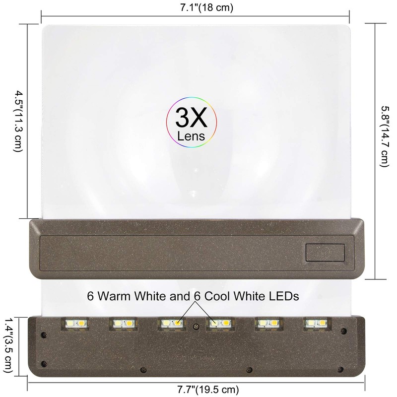 - ►[Ultra Bright LED Full Page Magnifier]-This full page magnifier with 12 LEDs, 6 warm white and 6 cool white LEDs,will provide evenly lit viewing area, and good for your eye-care.