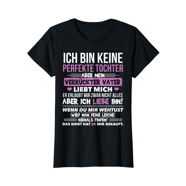 - Ein lustiges für die nicht perfekte Tochter vom stolzen Papa. Dieses lustige Design zeigt "Ich bin keine perfekte Tochter". Ideale Geschenkidee zum Geburtstag oder zu Weihnachten. Für alle Mädels die einen sehr stolzen Vater haben. Für die beste Tochter!