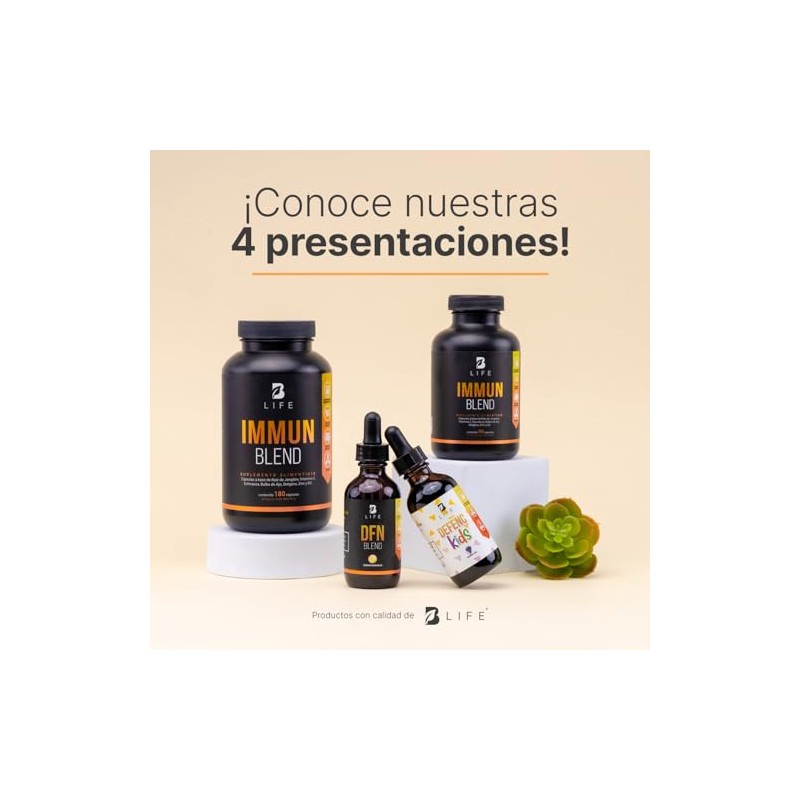 - ¡Disfruta la formulación de Immun Blend B Life! Diseñada a base de Raíz de Jengibre, Vitamina C, Equinácea, Bulbo de Ajo, Orégano, Zinc y Vitamina D3. Ingrediente valioso para tu corazón. Contiene 180 cápsulas.