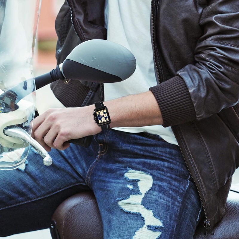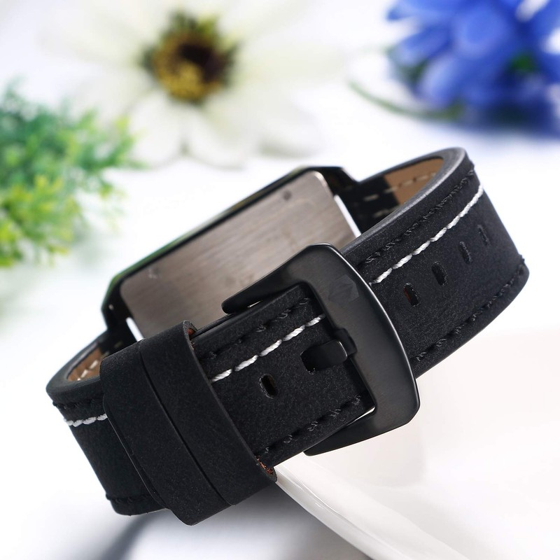 - Unique casual men's watches: unique fashion design with rectangular metal case and leather strap in black, the leather strap is made with pin buckle.
