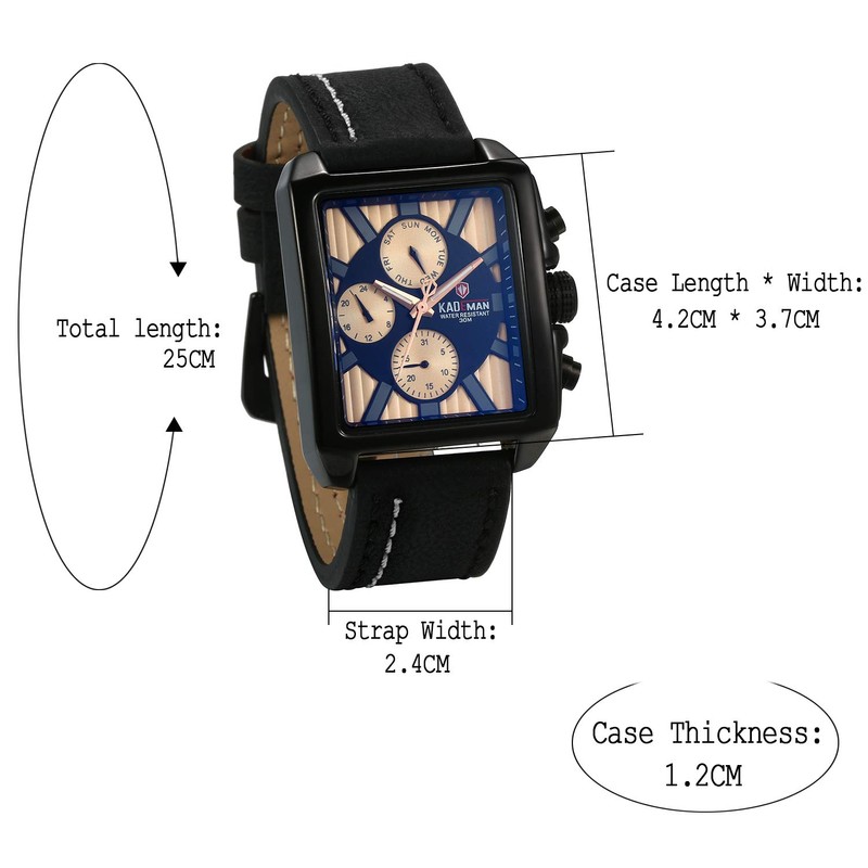 - Total length: 25 cm, case length x width: 4.2 cm x 3.7 cm, case thickness: 1.2 cm, strap width: 2.4 cm