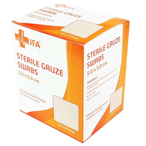 JFA Medical Premium Sterile Gauze Swabs 5cm x 5cm - Pack of 100