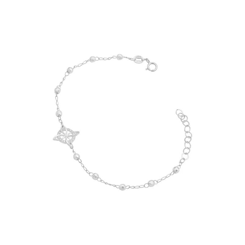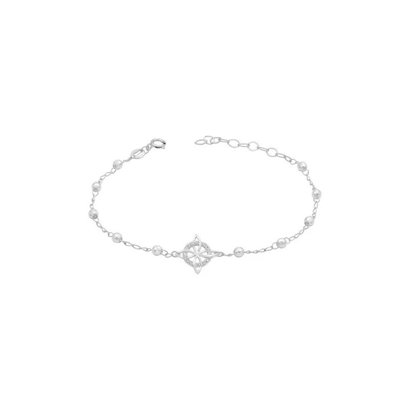 Eleva tu estilo con esta pulsera ajustable Joyaris, elaborada en Plata Ley .925, con un diseño esotérico y elegante que simboliza protección y energía positiva. El centro de esta pieza es un hermoso dije de Nudo de Bruja adornado con zirconias brillantes, acompañado de delicadas bolitas diamantadas que reflejan la luz con sutileza.