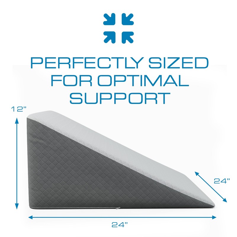 - SUPER COMFORTABLE BED WEDGE PILLOW, SNORING PILLOW: Available in 2 height options – 7.5 inch and 12 inch height. (24 x 24 x 7.5 or 24 x 24 x 12)