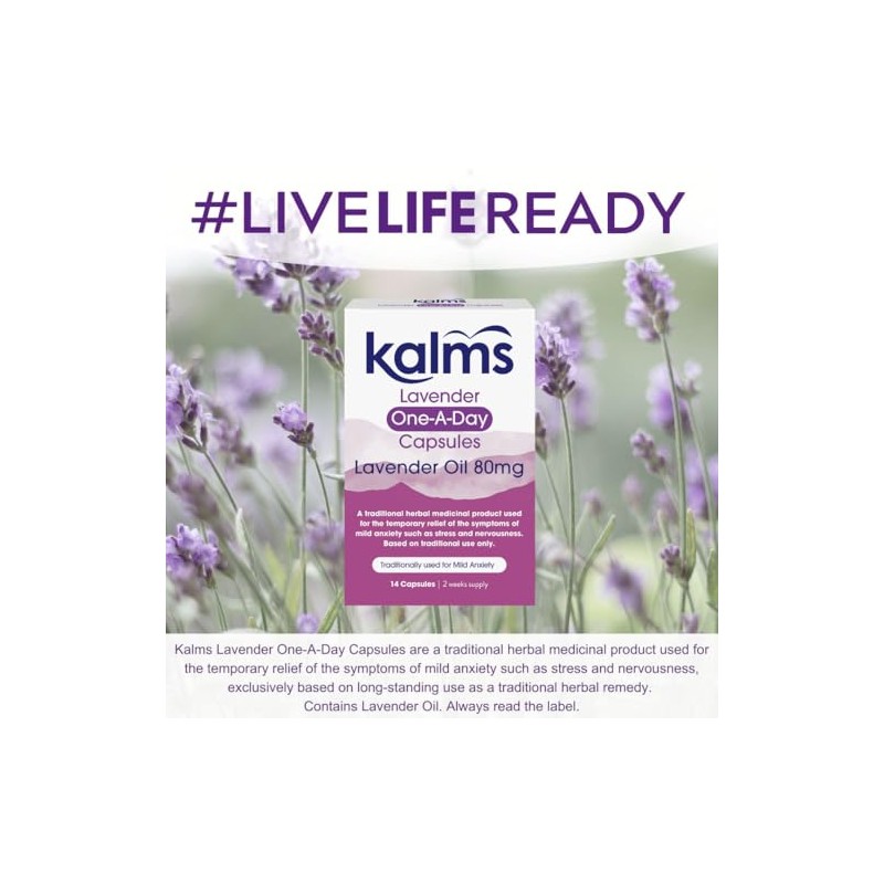 Kalms Kalms Lavender - One-a-day - 14 capsules - A Traditional Herbal Medicinal Product Used for the Temporary Relief of the Symptoms of Mild Anxiety Such as Stress and Nervousness
