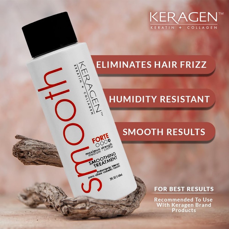 - MAXIMUM STRENGTH: Keragen Forte Smoothing Treatment is a chocolate maximum strength treatment infused with Keratin that tames and straightens even the thickest and most resistant curls, while rejuvenating and protecting the hair. The treatment will make your hair extremely smooth, shiny, soft, and easy to manage.