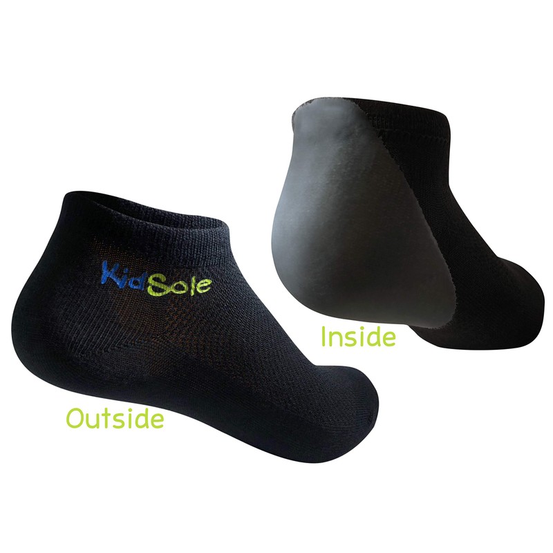 KidSole RX Gel Sports Sock for kids with heel sensitivity from Severs Disease, Plantar Fasciitis or any other undiagnosed heel pain issues. Made from mesh knit top material for maximum air flow. Gel layer inside sock is for active kids who need additional heel pain protection. US Kid's Sizes 1-4