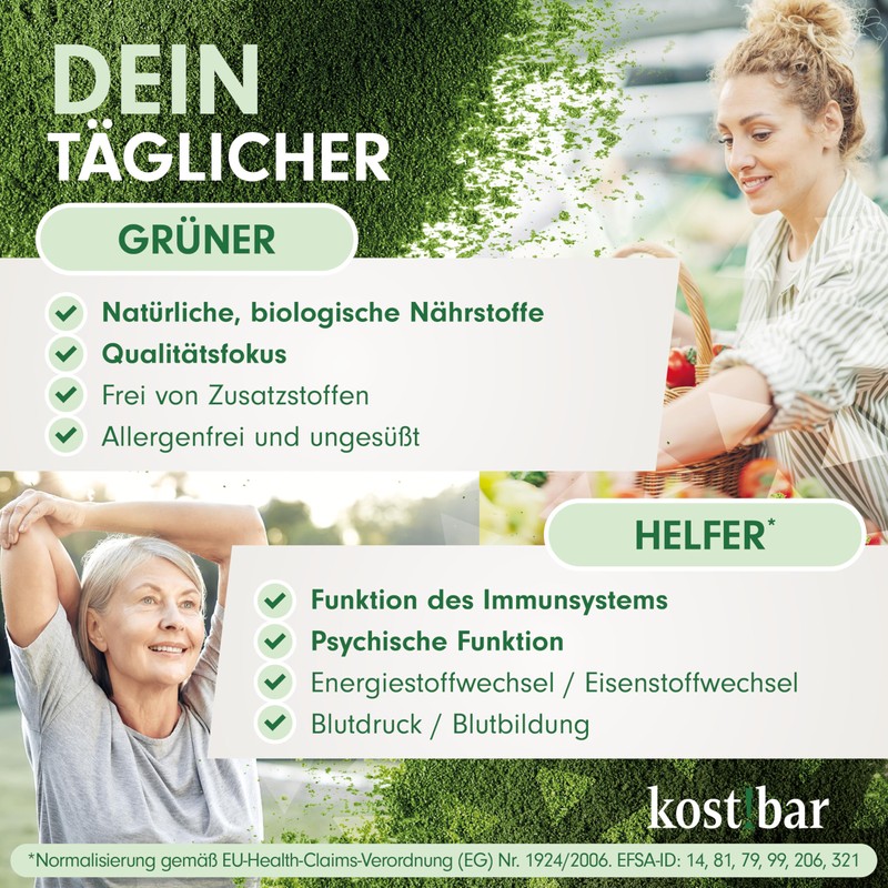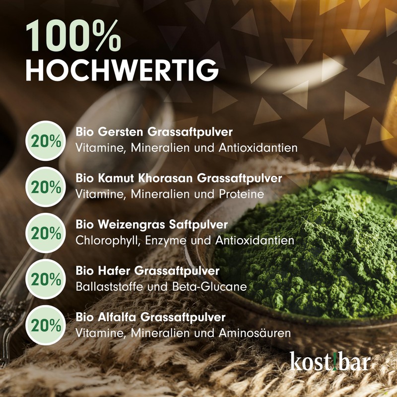 kost!bar Organic Greens Powder [40 Servings] Green Helper without Flavours and Additives - 5 High-Quality Grass Juice Powder Made from Barley Grass, Wheatgrass, Alfalfa, Kamut Khorasan, Oat Grass -