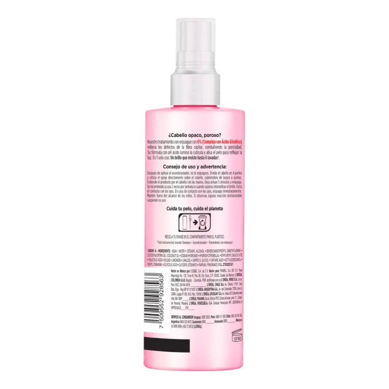 El Tratamiento Capilar Elvive Ultra Gloss Glycolic de L'Oréal Paris está formulado con ácido glicólico, un potente ingrediente conocido por su capacidad de penetrar profundamente la fibra capilar y sellar la cutícula, dejando el cabello visiblemente más brillante, suave y manejable desde el primer uso.