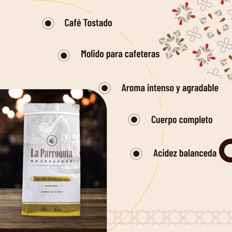 LA PARROQUIA DE VERACRUZ - Café 100% Puro, 430g, Tostado Tradicional, Elaborado con Alta Calidad, Aroma Intenso y Cuerpo Completo