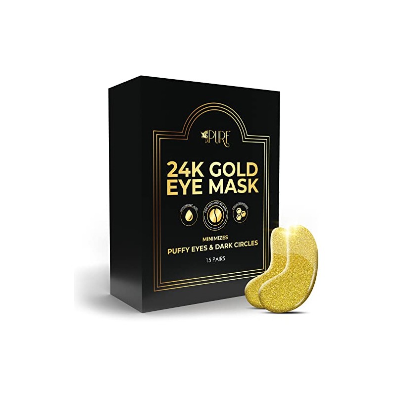 LA PURE 24K Gold Eye Treatment Masks - Under Eye Patches, Dark Circles Under Eye Treatment, Under Eye Bags Treatment, Eye Mask for Puffy Eyes, Anti-Wrinkle, Undereye Dark Circles, Gel Pads 15 Pairs