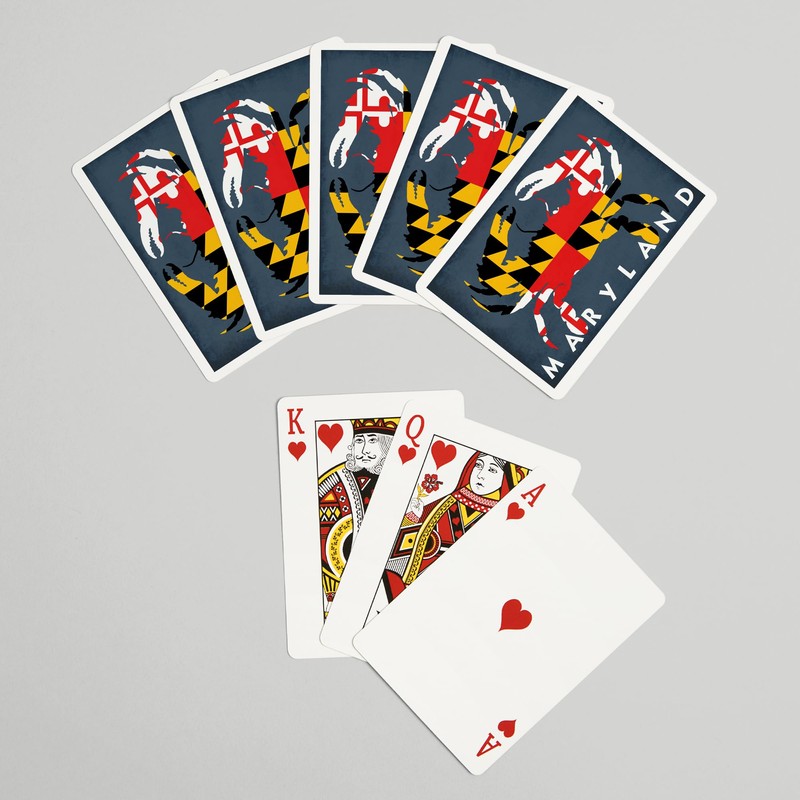 - Maryland, Crab Flag (52 Playing Cards, Poker Size Card Deck with Jokers), Made in the USA.