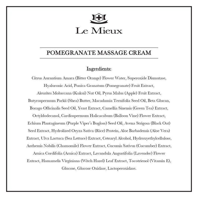 Le Mieux Pomegranate Massage Cream - Aromatic Moisturizing Neck & Face Massage Cream with Algae, Hyaluronic Acid & Botanical Oils, No Parabens or Sulfates (2 oz / 60 ml)