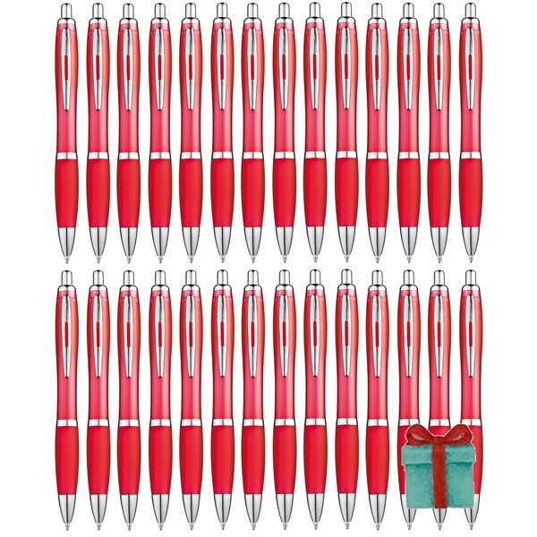 - Contents: the set contains a total of 50 red ballpoint pens with blue ink refill and a small gift. Cardboard packaging